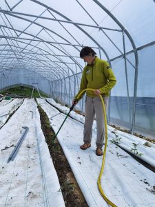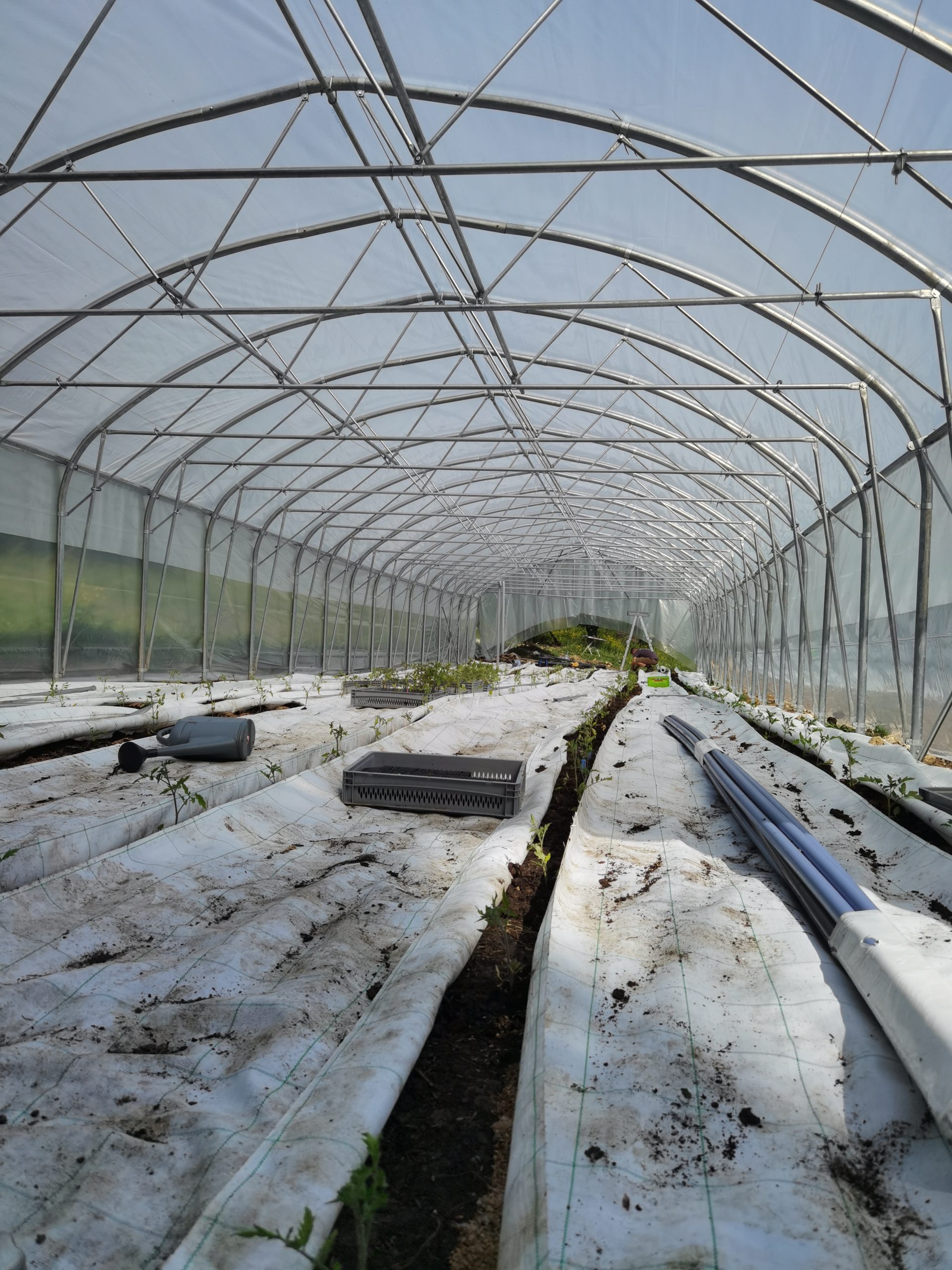 La grosse serre est à moitié bâchée et les tomates ont enfin pris leur place avec beaucoup de retard…. Plus qu’à espérer une arrière saison digne de ce nom😁