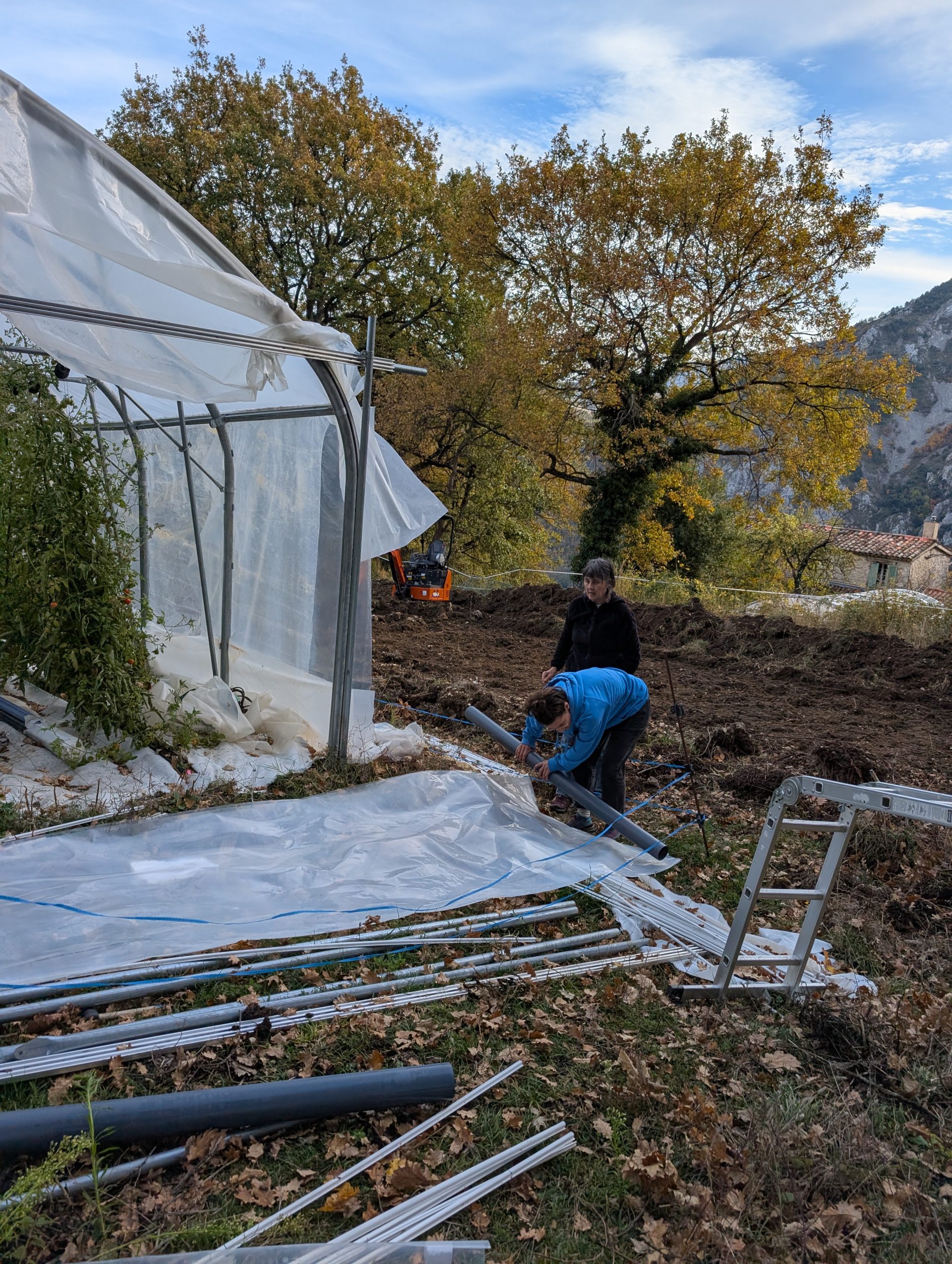 La première grosse serre est finie, du moins son enveloppe 🥳 « plus que » la partie technique😬