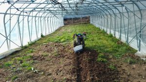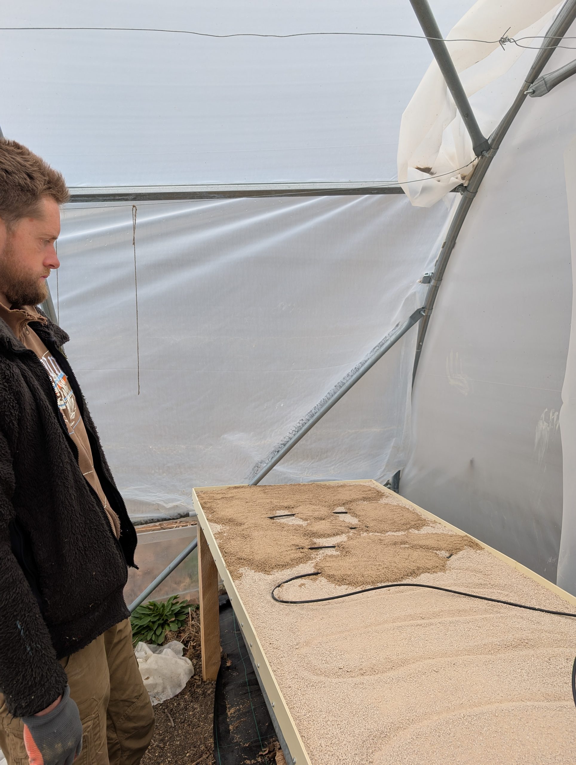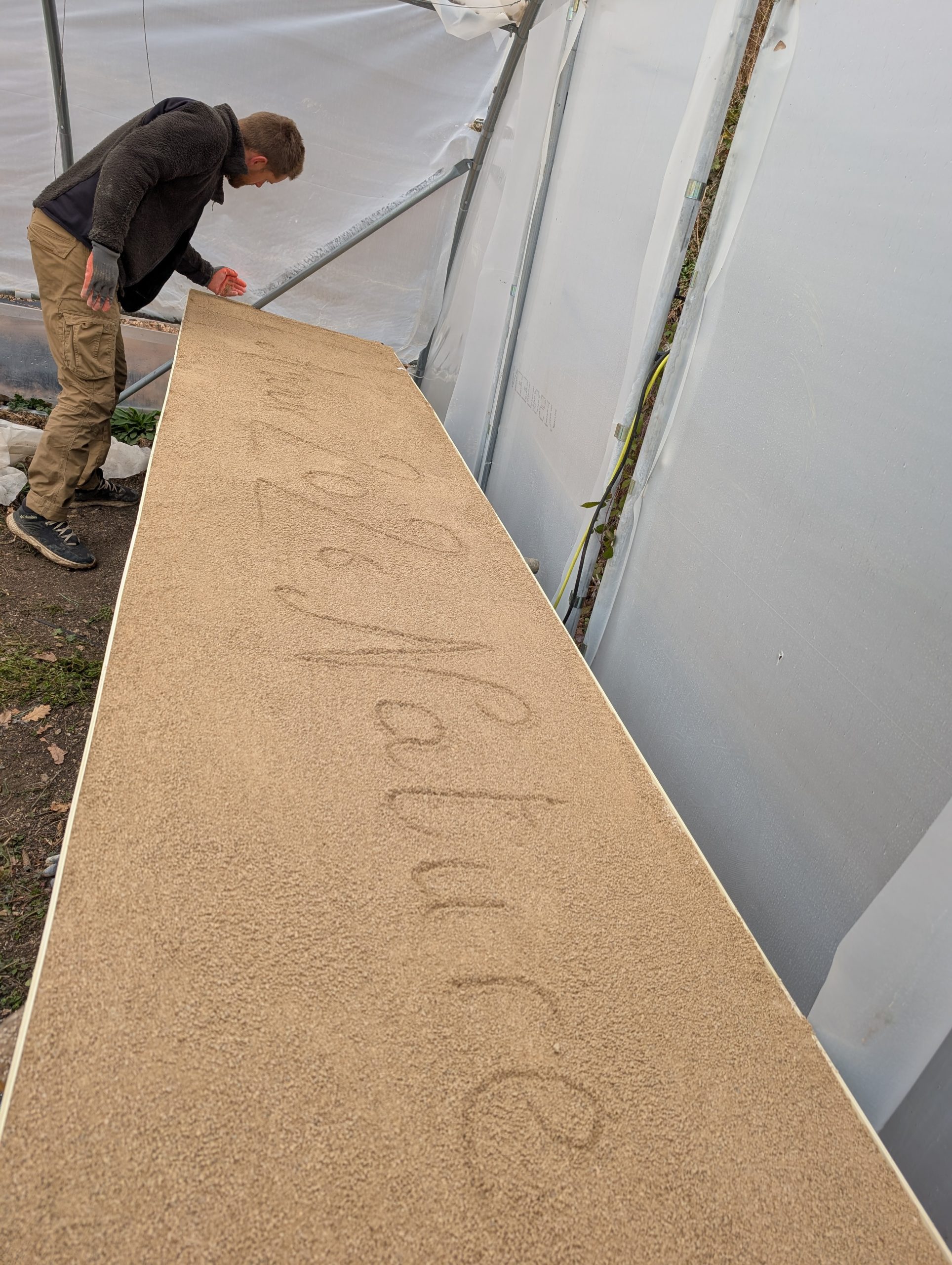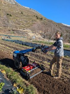 Prépa des planches de la grande serre car les premiers semis sont déjà devenus grands et on besoin de plus d’espace