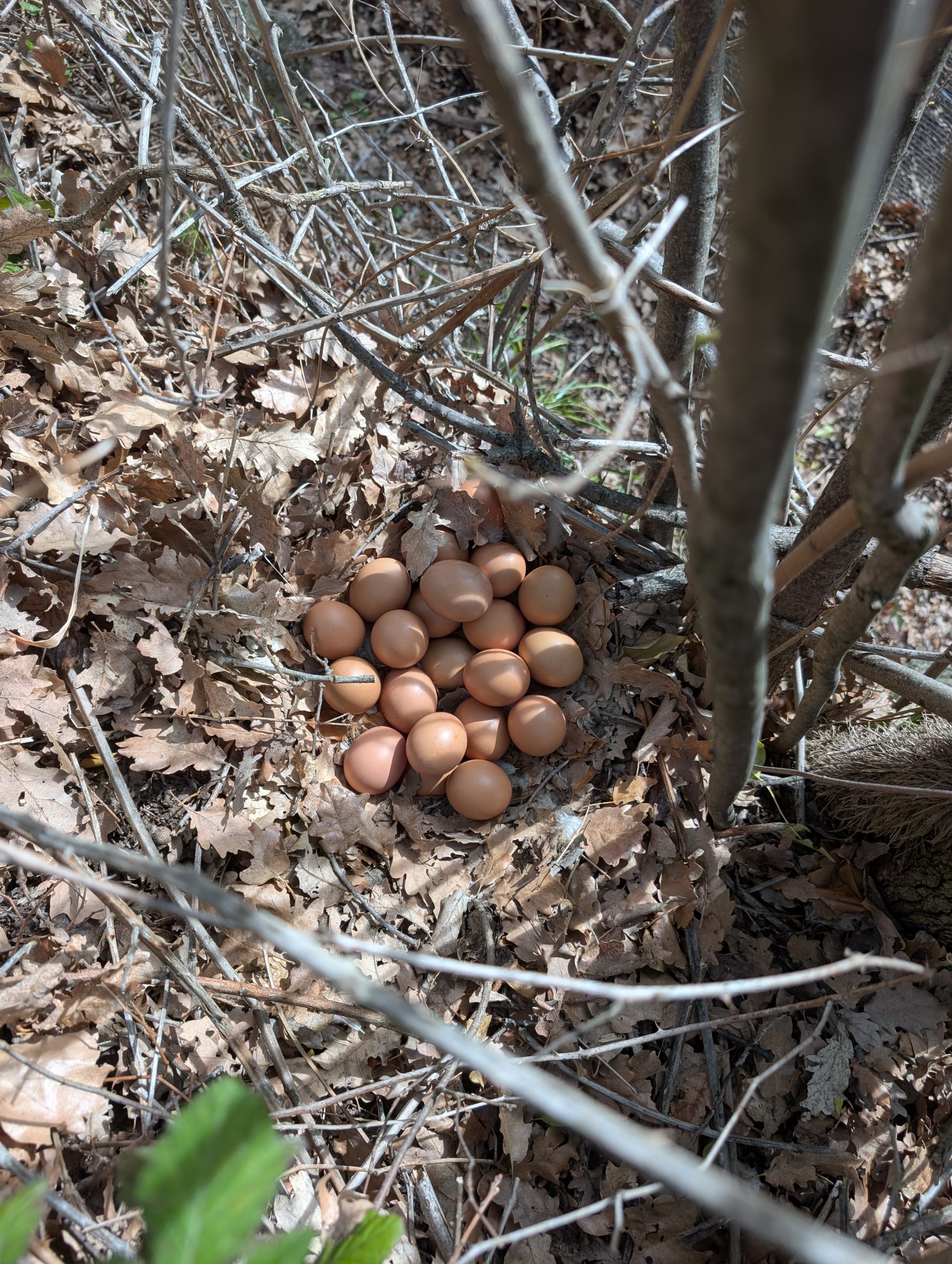 Découverte d’un nid d’une de nos poules qui boude le poulailler 🤦 pas moins de 21 œufs à l’intérieur 😅