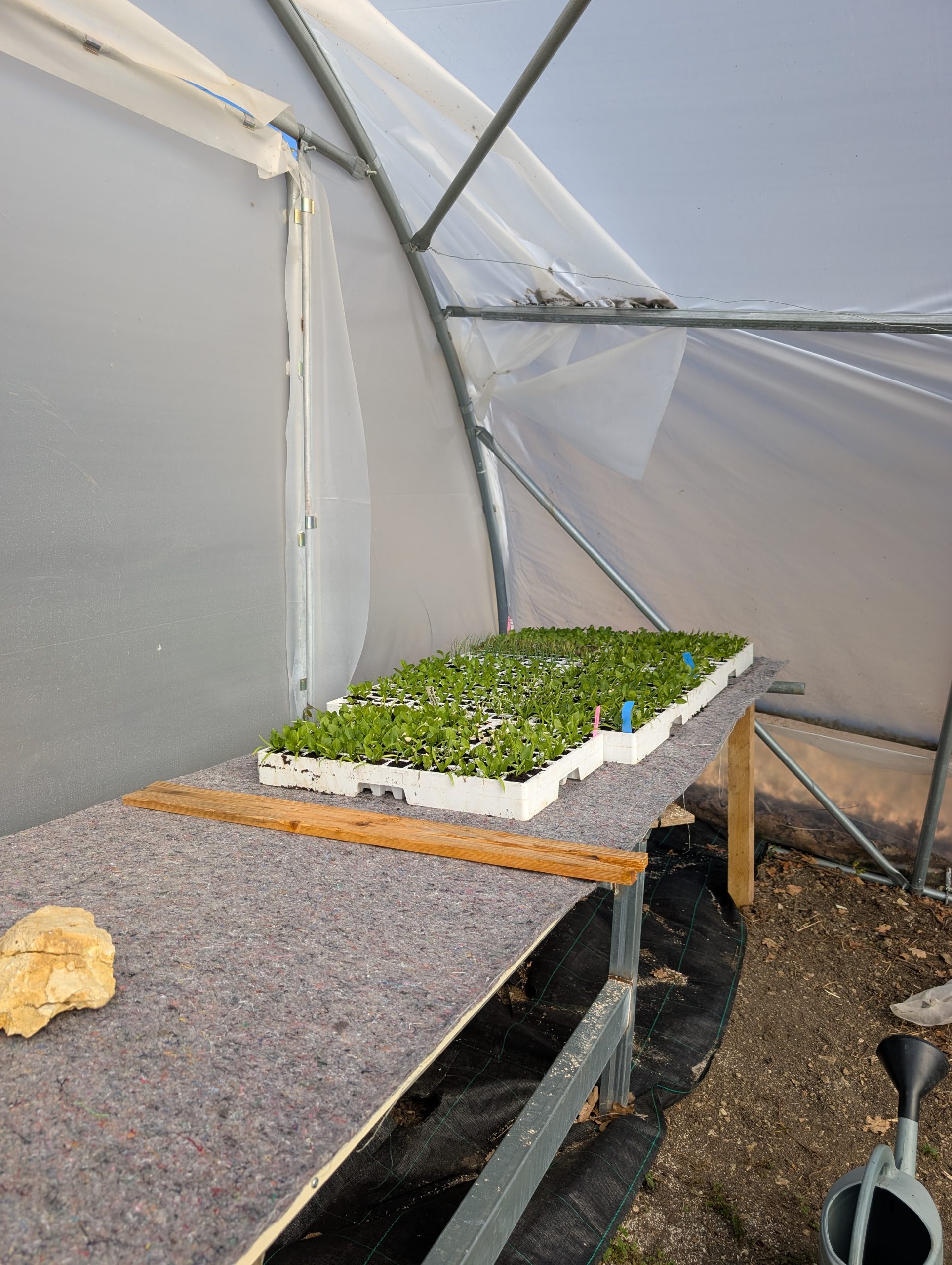 On a enfin fini la table chauffante à semis, et les épinards ont pris place avant d’être plantés dans la grande serre
